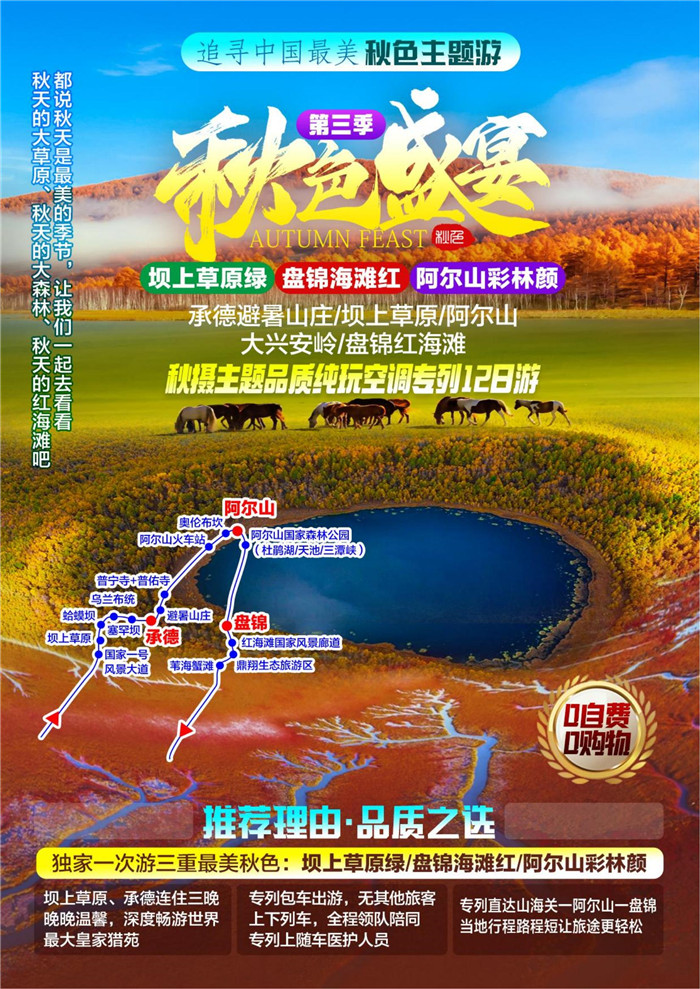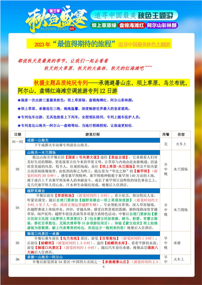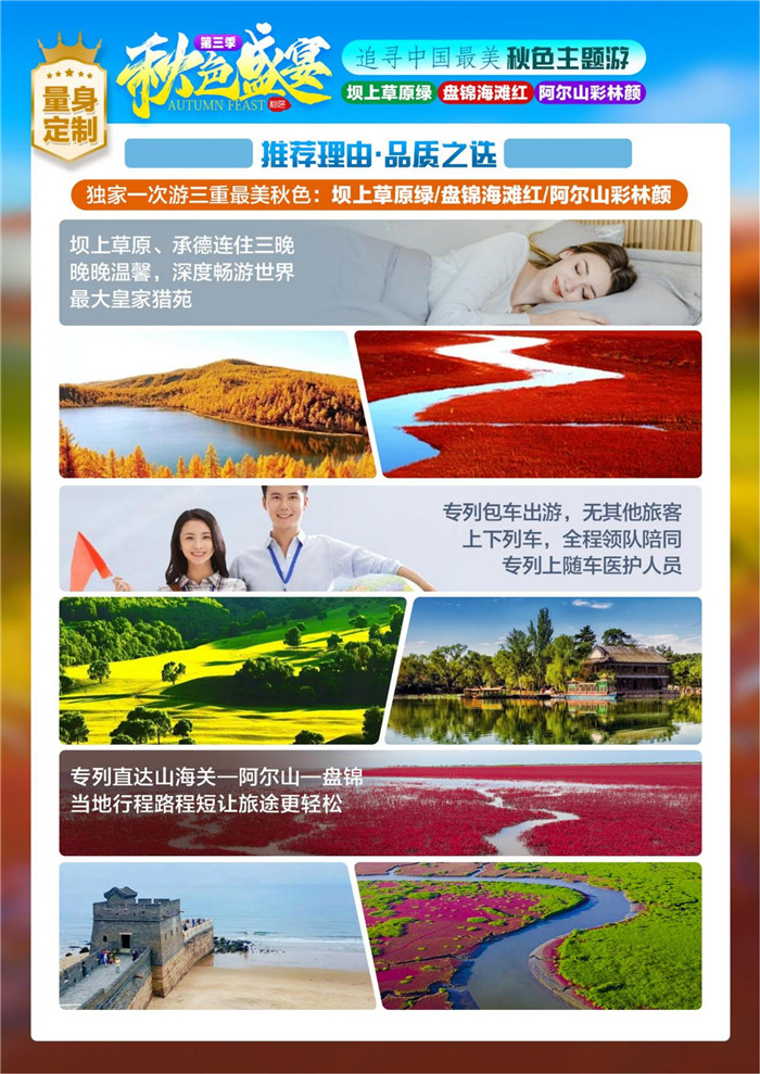 綿陽中旅行假日旅行舉行2023年秋攝三絕壩上阿爾山紅海灘空調旅游專列12日游推薦會