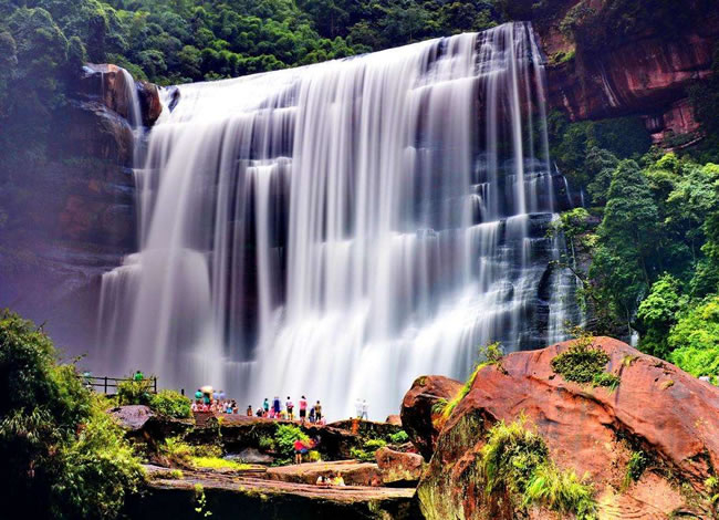 早餐后前往當?shù)厣鐣唐妨闶燮髽I(yè)自由活動并領精美紀念品,名特產品(較為著名云上赤水泰和乳膠、逸可瑞斯乳膠等,主要銷售乳膠制品),自由活動后前往【赤水大瀑布】欣賞美譽中國的簾狀瀑布典型代表中洞瀑布。觀氣勢恢弘的赤水大瀑布(寬81米,高76米),是亞洲最大的瀑布,也是“世界丹霞第一瀑”,瀑水從懸崖絕壁傾瀉而下,猶如萬馬奔騰,聲如雷鳴,水霧彌漫,陽光下時見彩虹繽紛,在特定的觀景石上,奇妙的佛光環(huán)隨人移動,一人一環(huán),美不勝收。自由活動后乘車前往【白馬溪景區(qū)】(此景點為旅行社贈送景點,若時間緊湊無法前往請各位旅客諒解,贈送景點不予置換或退費),(白馬溪景區(qū)內有玻璃橋、旱滑道等娛樂項目,客人可根據自身情況自愿選擇自己喜歡的項目參加,報價不含娛樂項目)赤水白馬溪景區(qū)是赤水唯一家主題景區(qū),景區(qū)集有赤水旅游的5大旅游元素;瀑布景觀、丹霞景觀、竹林景觀、石斛觀光、以及活化石桫欏樹。景區(qū)原生植被繁茂,景色怡人,環(huán)境絕佳。是旅游觀光的絕佳勝地,晚餐可自費品嘗(苗家風情晚會120元/人),同時觀賞苗家印象激情互動篝火晚會,或自由活動。酒店休息。
